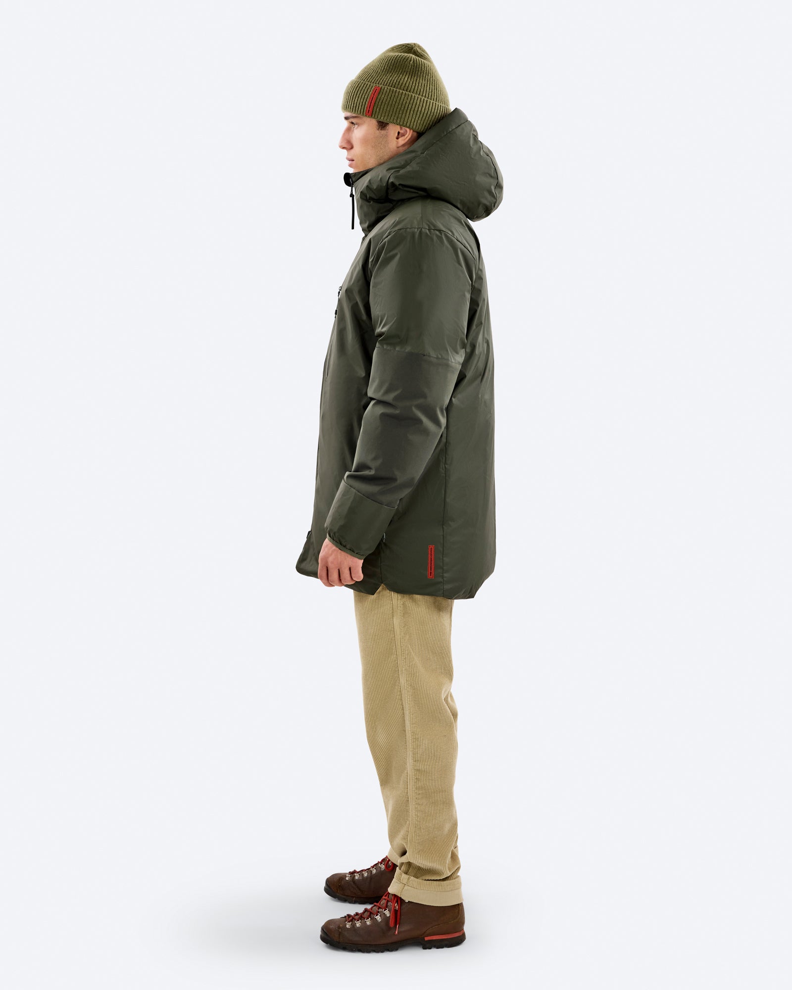 The A-5 R is a reversible down parka with an extended cut, built for seamless transitions between mountain pursuits and city life. The quilted side has a sporty, technical look, while the sleek side is more sophisticated and clean. Regardless of which side you choose, the parka keeps you warm and fully protected from the cold and the wind.