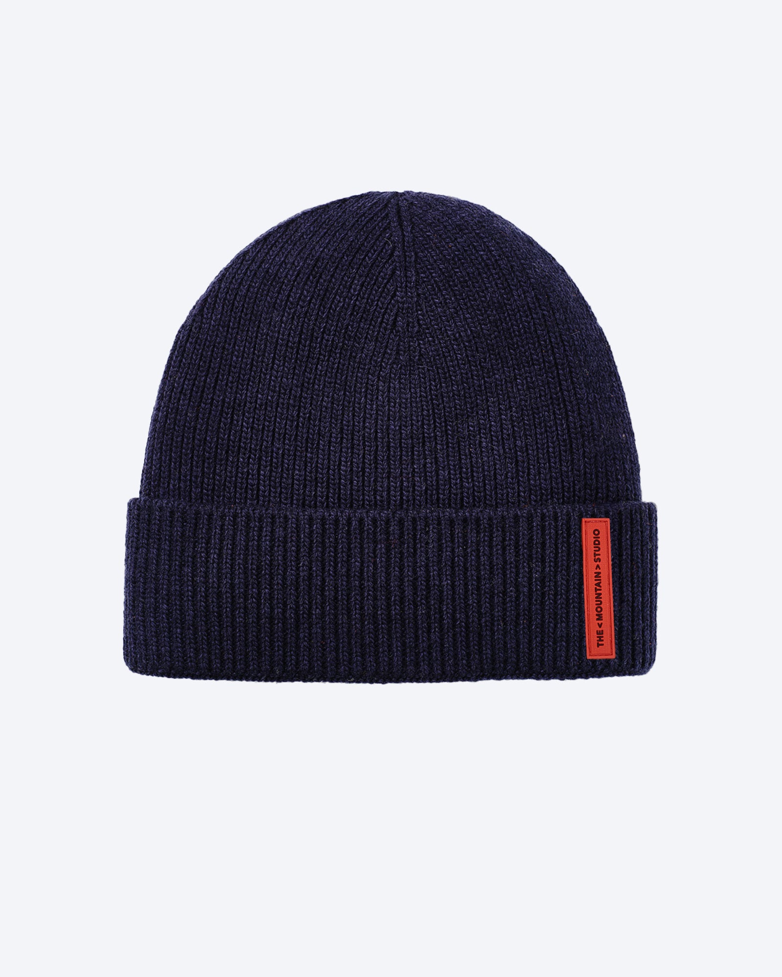 Ribbed beanie with a wide cuff in soft wool knit. Features a silicone The Mountain Studio logo patch on the front.