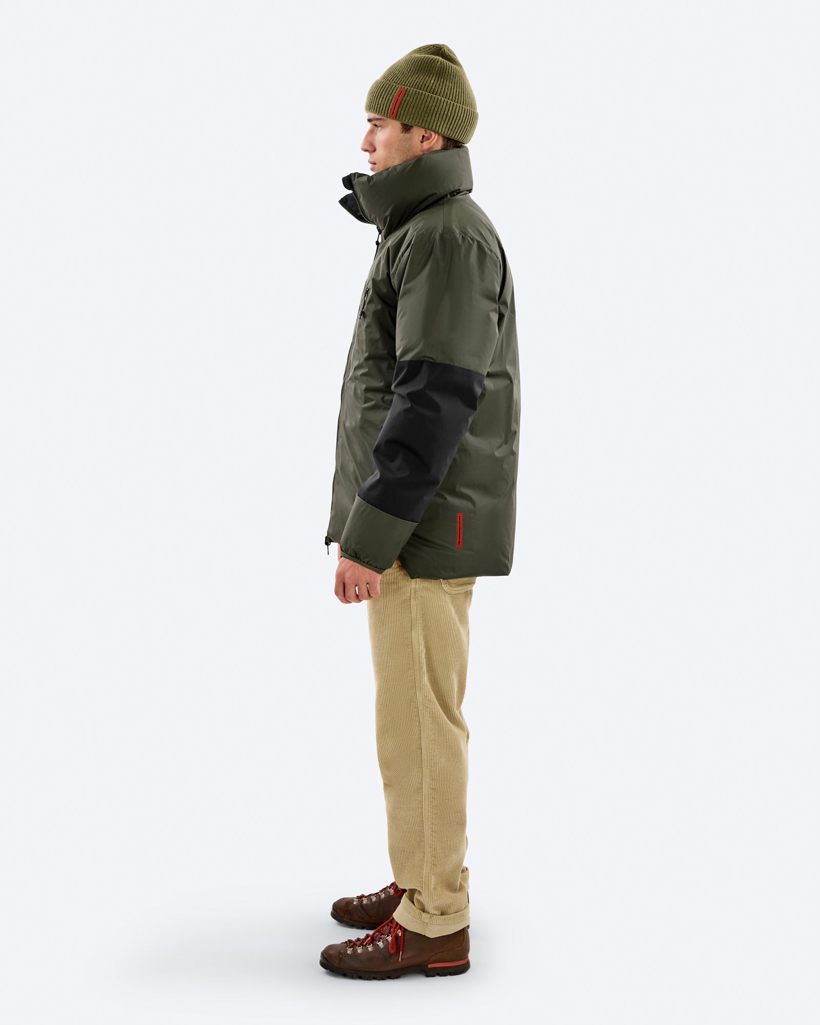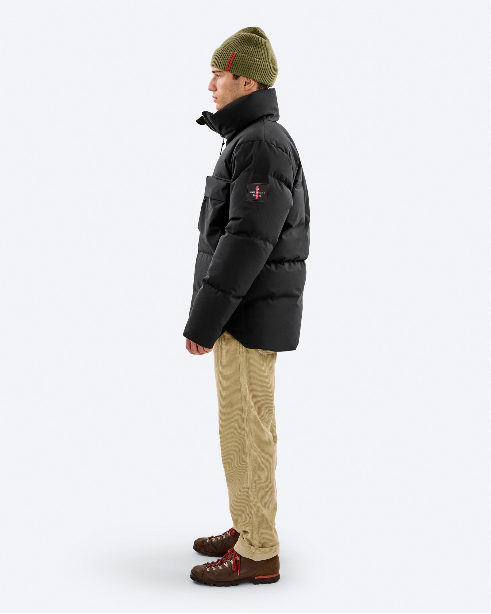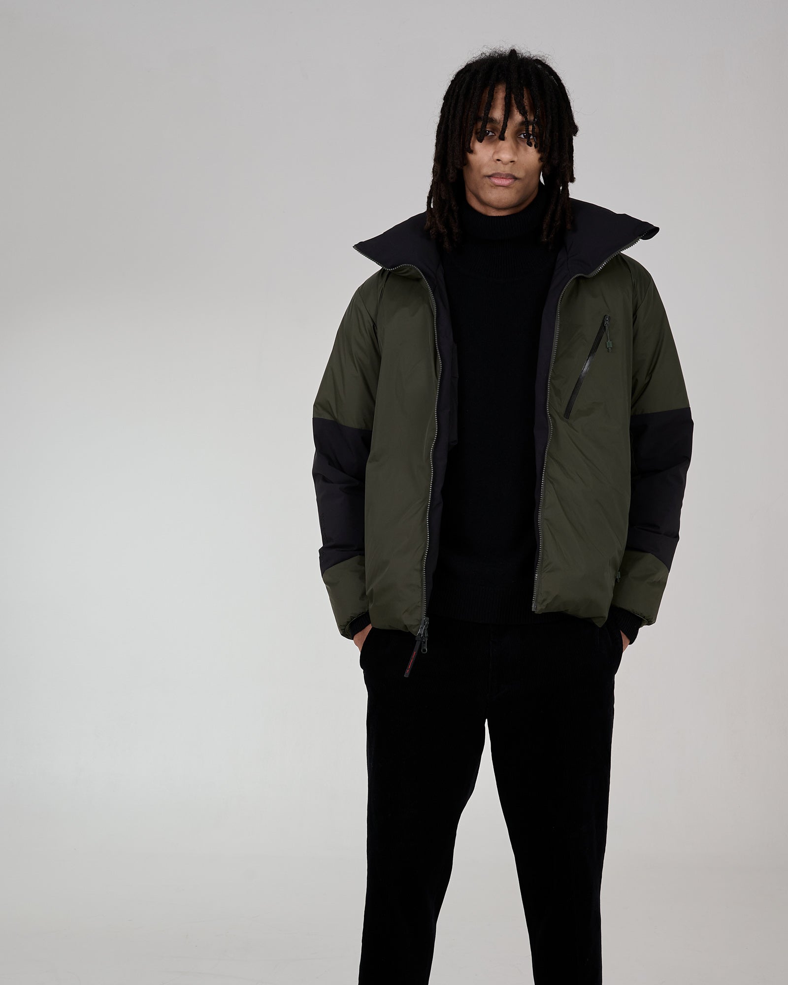 A classic-looking down jacket that is reversible for two distinctly different styles. The quilted side looks technical, while the sleek side offers a cleaner, more sophisticated look. Both sides are entirely technical and protect you from the wind and the cold. Which side you choose is up to you and the situation.