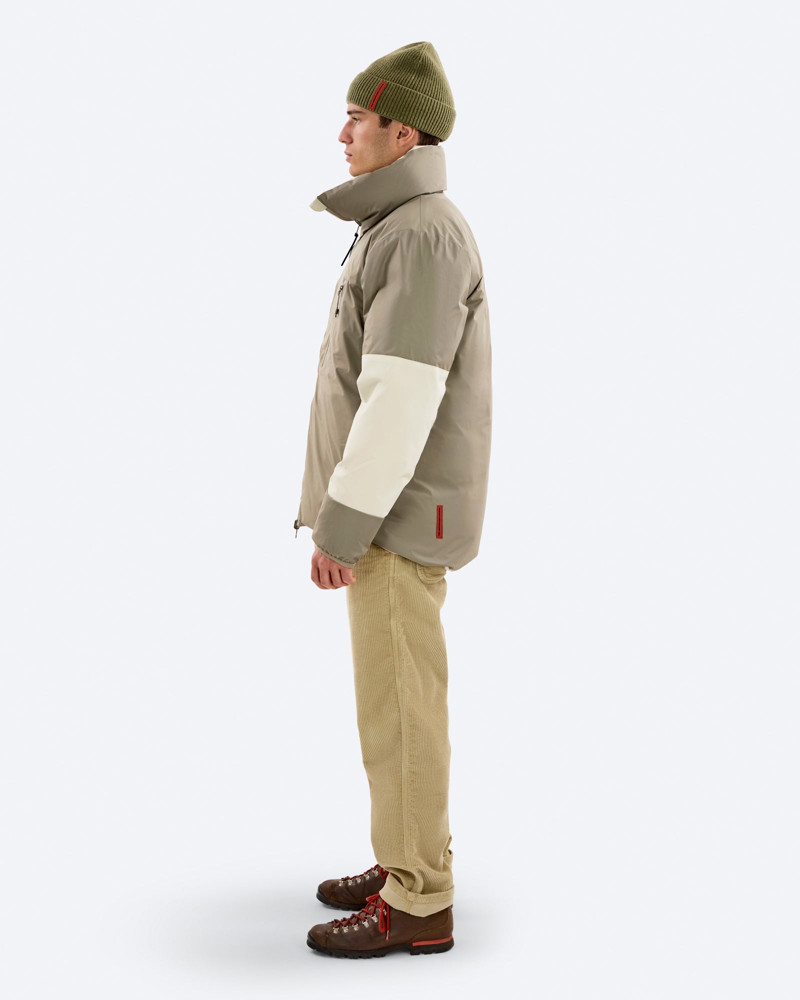 A classic-looking down jacket that is reversible for two distinctly different styles. The quilted side looks technical, while the sleek side offers a cleaner, more sophisticated look. Both sides are entirely technical and protect you from the wind and the cold. Which side you choose is up to you and the situation.