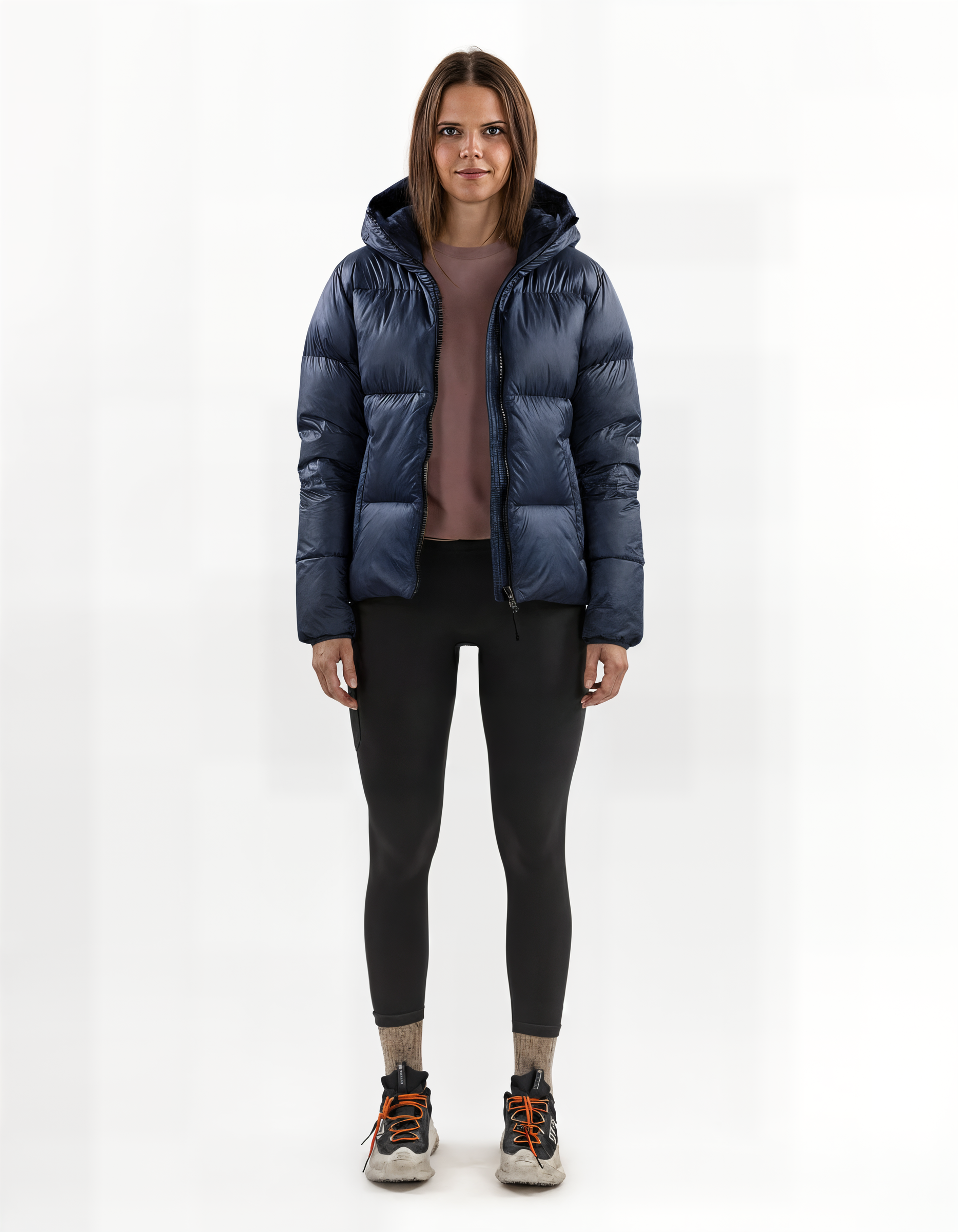 This premium reversible down jacket is made for skiing and mountain life. The shiny side is built from 20D Pertex Quantum, a tightly woven fabric with a perfect balance between protection and breathability. The filaments have a uniquely engineered rhomboid form, providing significantly increased durability. The matte side has a 15 000 mm water pillar, hydrophilic membrane. The down fill is a high quality 750 fill power, RDS certified down. Features a generous hood and two hand pockets on both sides of the jacket.