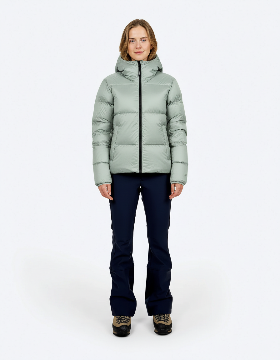 This premium reversible down jacket is made for skiing and mountain life. The shiny side is built from 20D Pertex Quantum, a tightly woven fabric with a perfect balance between protection and breathability. The filaments have a uniquely engineered rhomboid form, providing significantly increased durability. The matte side has a 15 000 mm water pillar, hydrophilic membrane. The down fill is a high quality 750 fill power, RDS certified down. Features a generous hood and two hand pockets on both sides of the jacket.