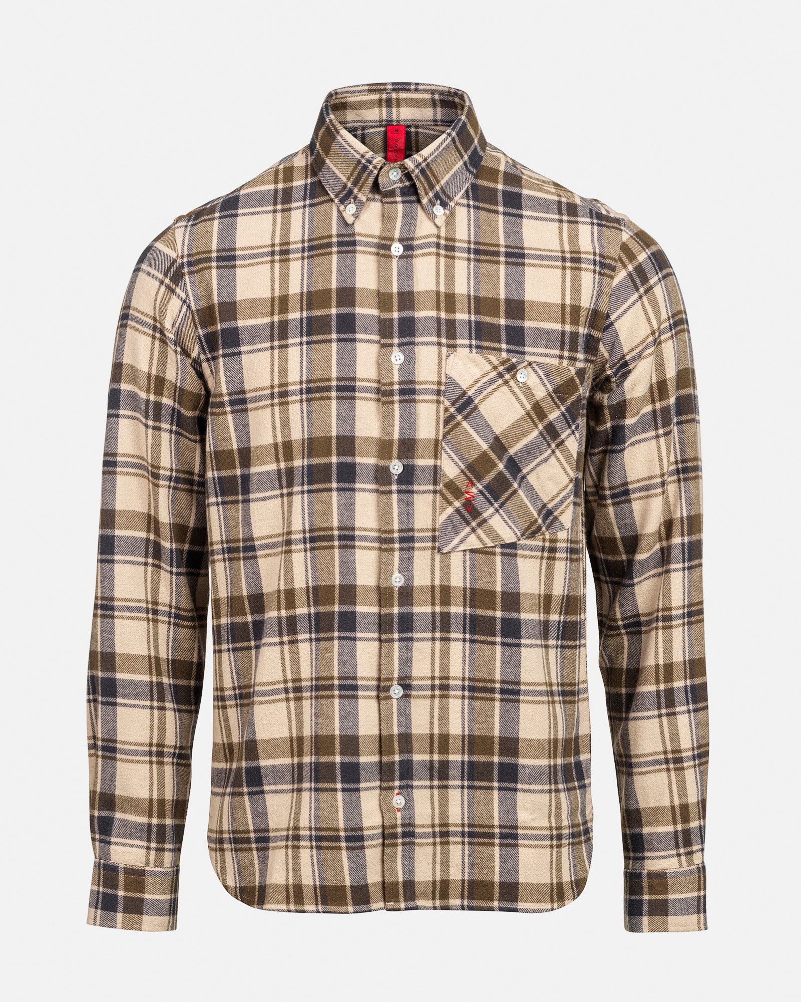 The G-10 is a classic button-down shirt with a checkered pattern. Features a chest pocket with snap closure and The Mountain Studios signature sidecut hem. The G-10 is a timeless shirt with a casual go-anywhere style.