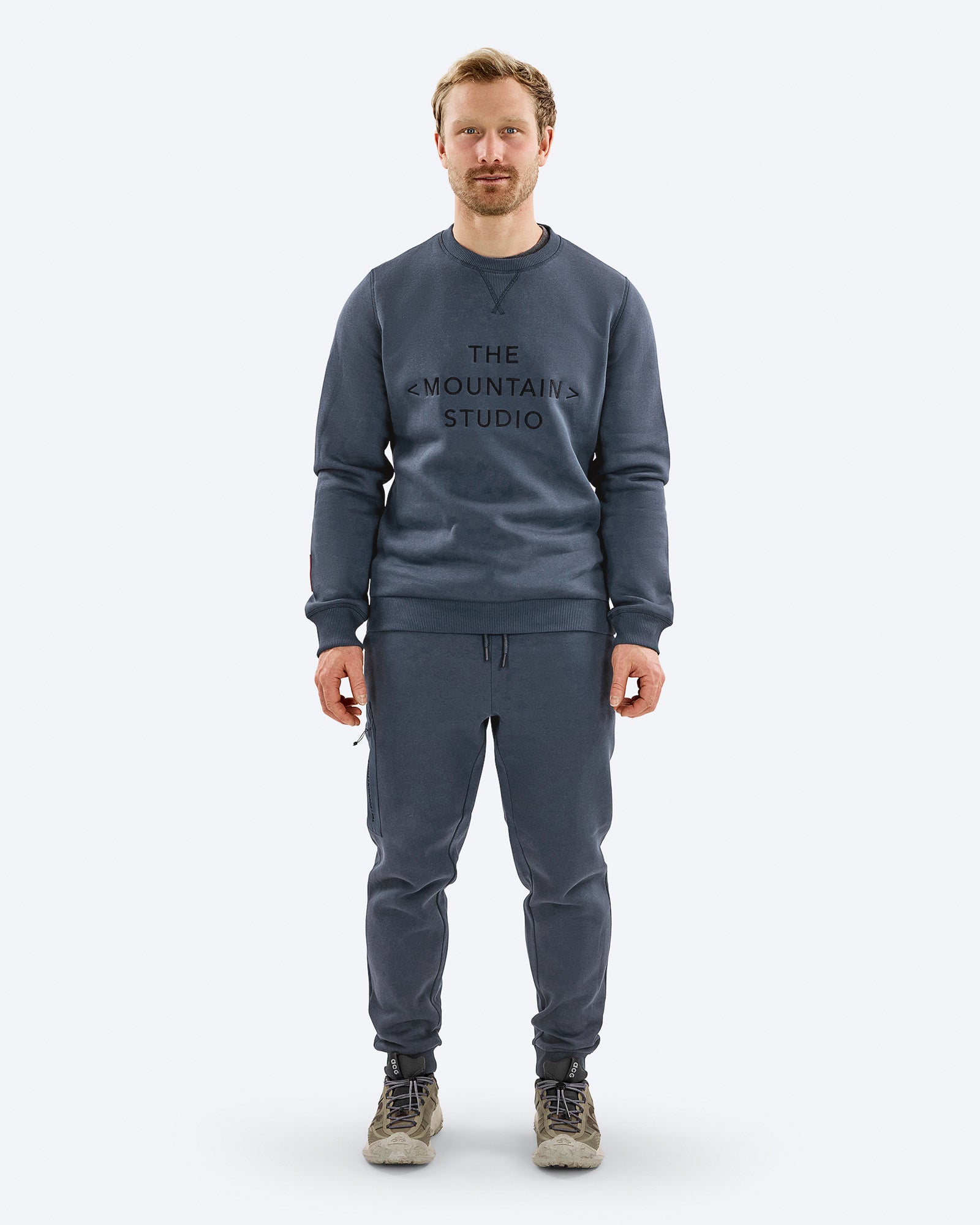 This is our crew neck with a The Mountain Studio embroidery on chest. Made from a 260 g organic cotton with brushed back for softness and warmth. A sweater to wear every day.