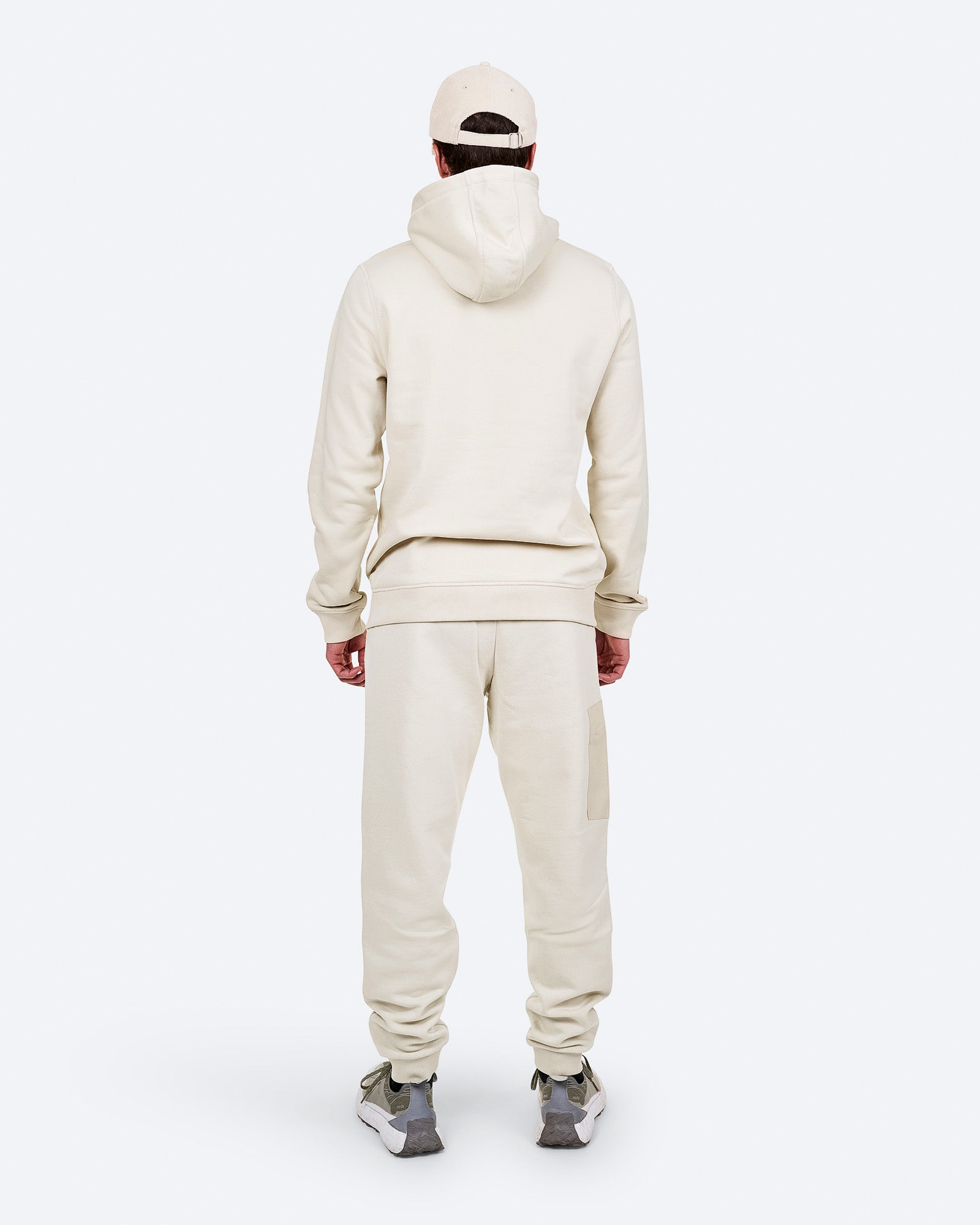 Constructed from a 260g blend of 77% organic cotton and 23% recycled polyester, these cotton blend hiking pants deliver a soft brushed interior for lasting comfort. The fabric is engineered for durability, supporting daily wear and maintaining shape over time. Reinforced seams and practical pocket placement add to the functionality, making these sustainable men's sweatpants a dependable choice for active and relaxed settings. The brushed finish enhances the soft material lounge pants feel, suitable for both indoor and outdoor use.