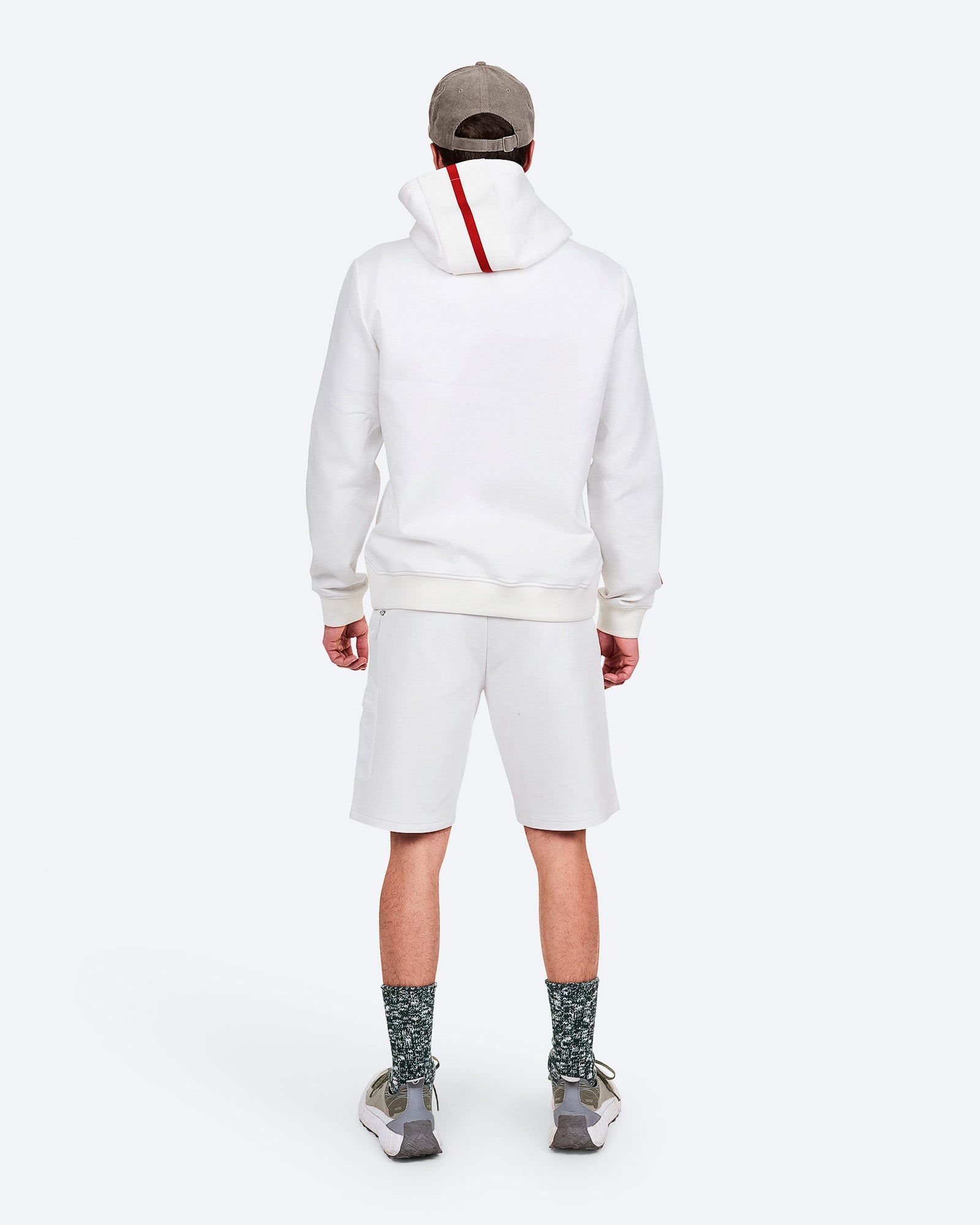 Constructed from a heavyweight cotton blend (80% cotton, 16% polyester, and 4% elastane) these cotton stretch shorts maintain their shape and resist wear. Technical fabric shorts like these are built to last, with reinforced seams and abrasion-resistant materials for demanding environments. Storage is secure and practical, with hand pockets, a zippered back pocket, and a zippered cargo pocket on the left leg, finished with a vertical silicone logo for subtle detail.