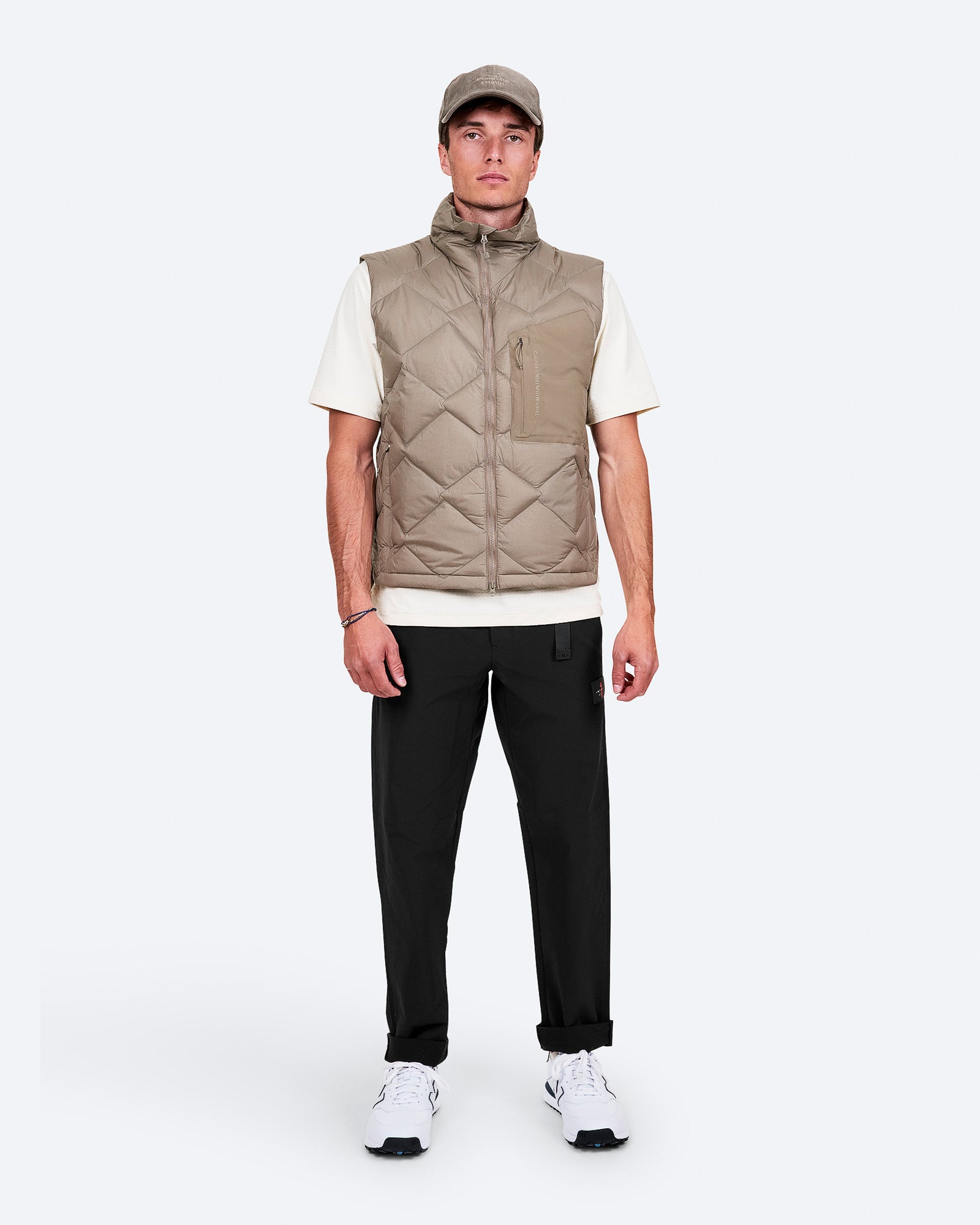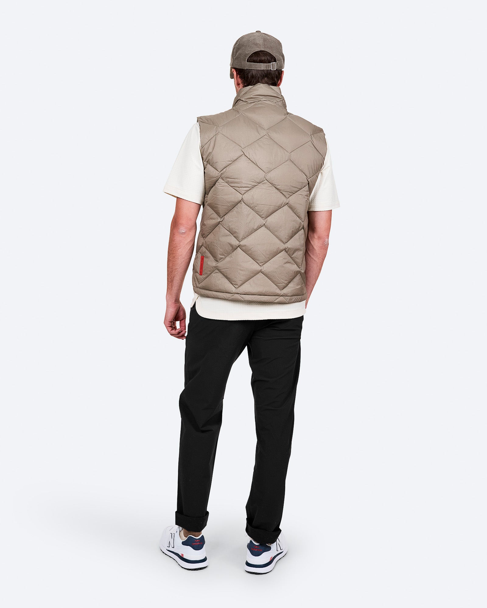 Filled with 700-fill-power, RDS-certified down and protected by a 100% nylon shell with a PFAS-free DWR finish, this premium warm vest delivers strong warmth-to-weight performance. Diamond quilt construction supports loft retention, and the two-way zipper allows for easy ventilation and fit adjustment. Multiple pockets, including two hand pockets, two inner pockets, and a zippered chest pocket, offer secure storage for essentials on the move.